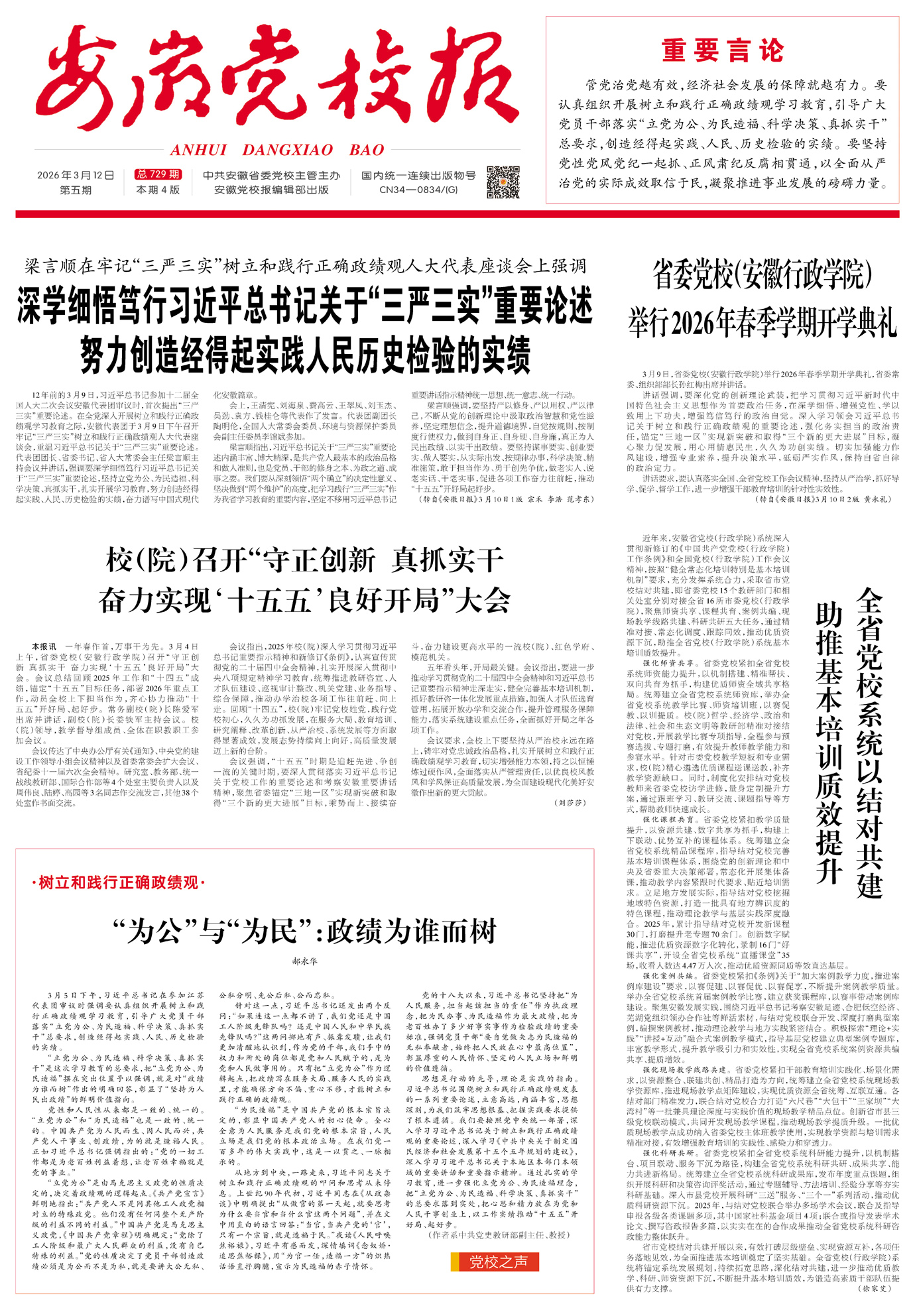 省委党校(安徽行政学院)举行2026年春季学期开学典礼