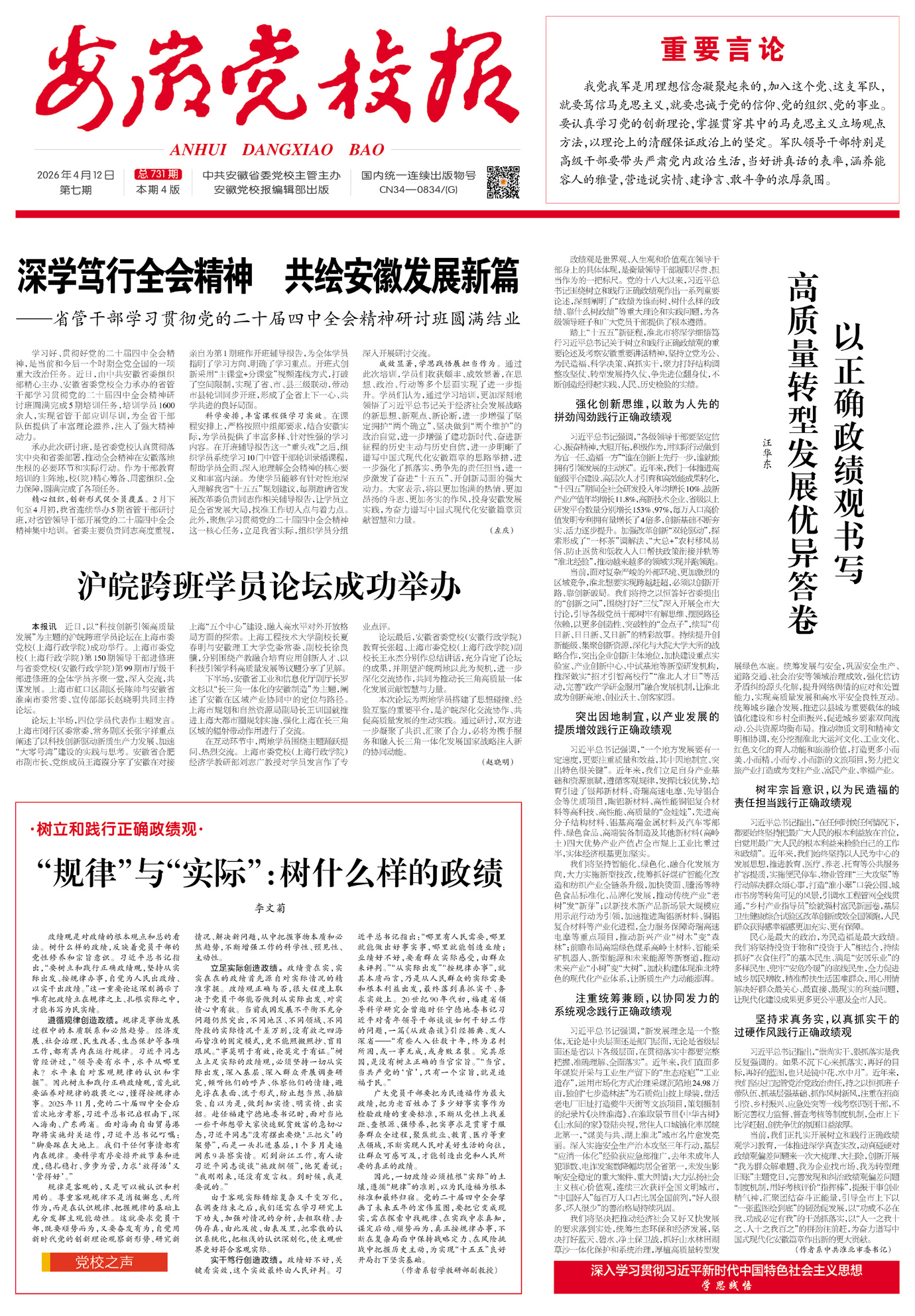 深学笃行全会精神 共绘安徽发展新篇